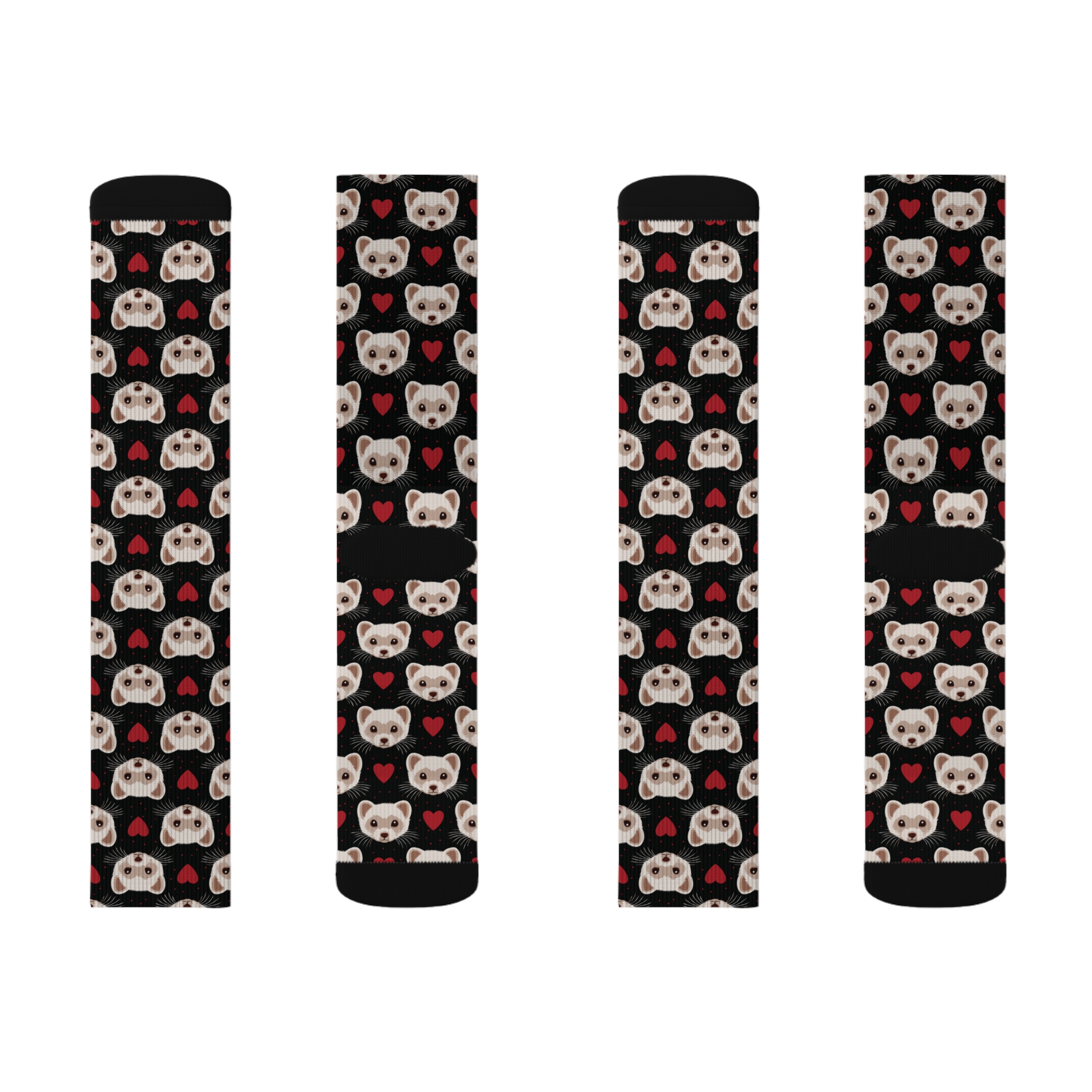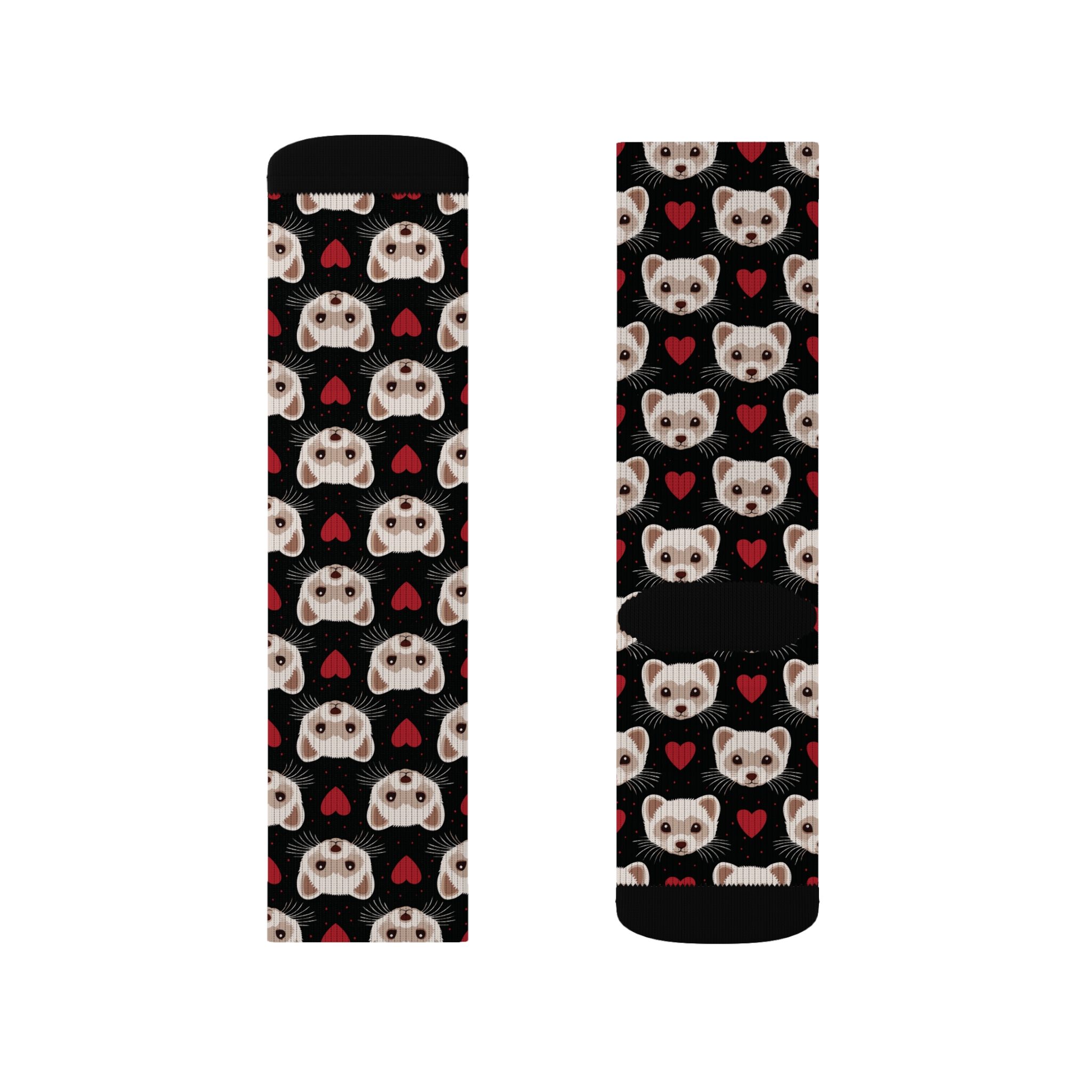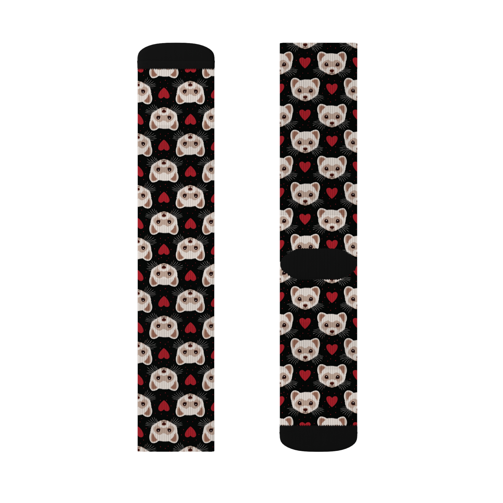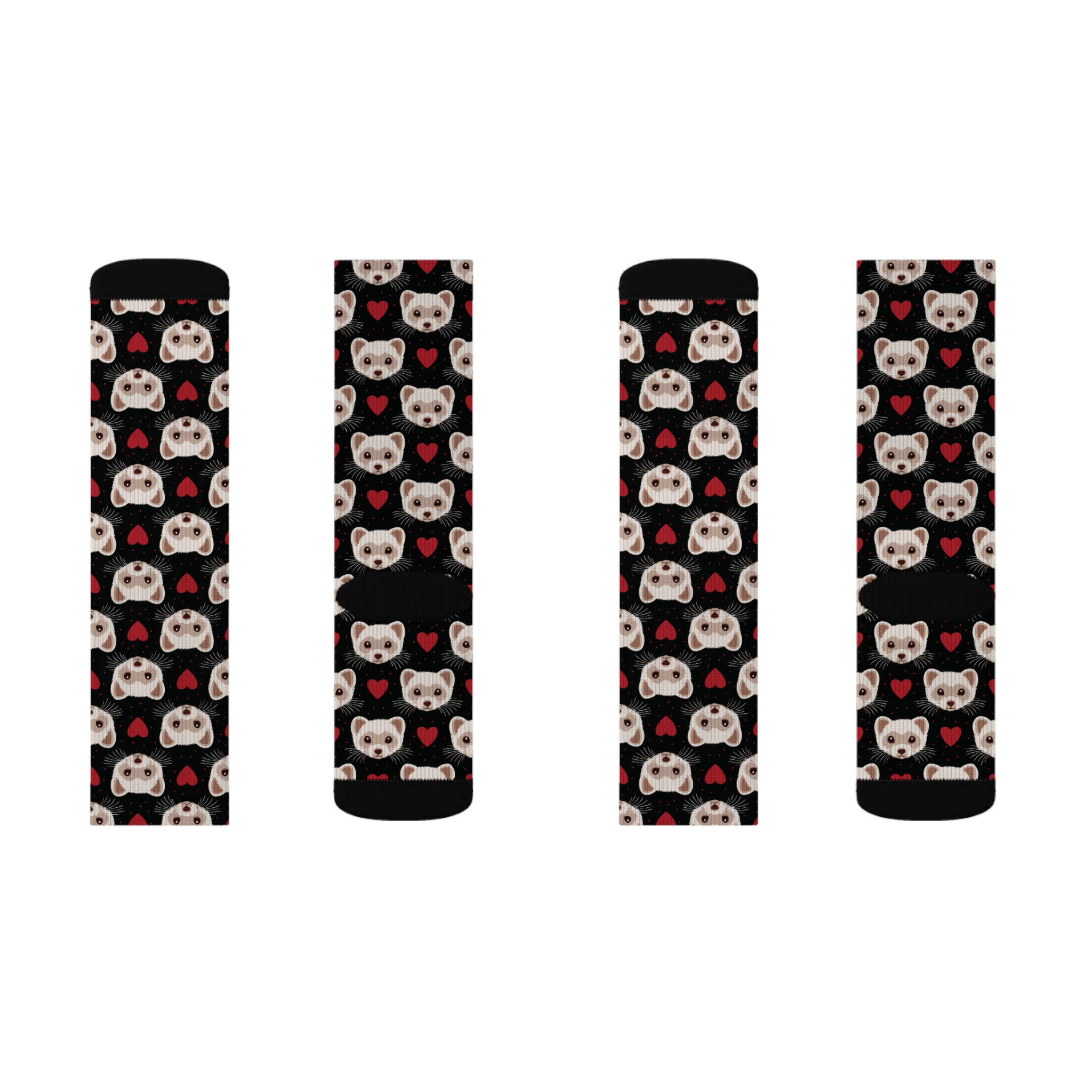 These black socks with adorable ferret faces add playful charm to any wardrobe. The cute, quirky design showcases curious ferret expressions, bringing fun to your feet. Made from soft, durable fabric, they're perfect for ferret lovers …