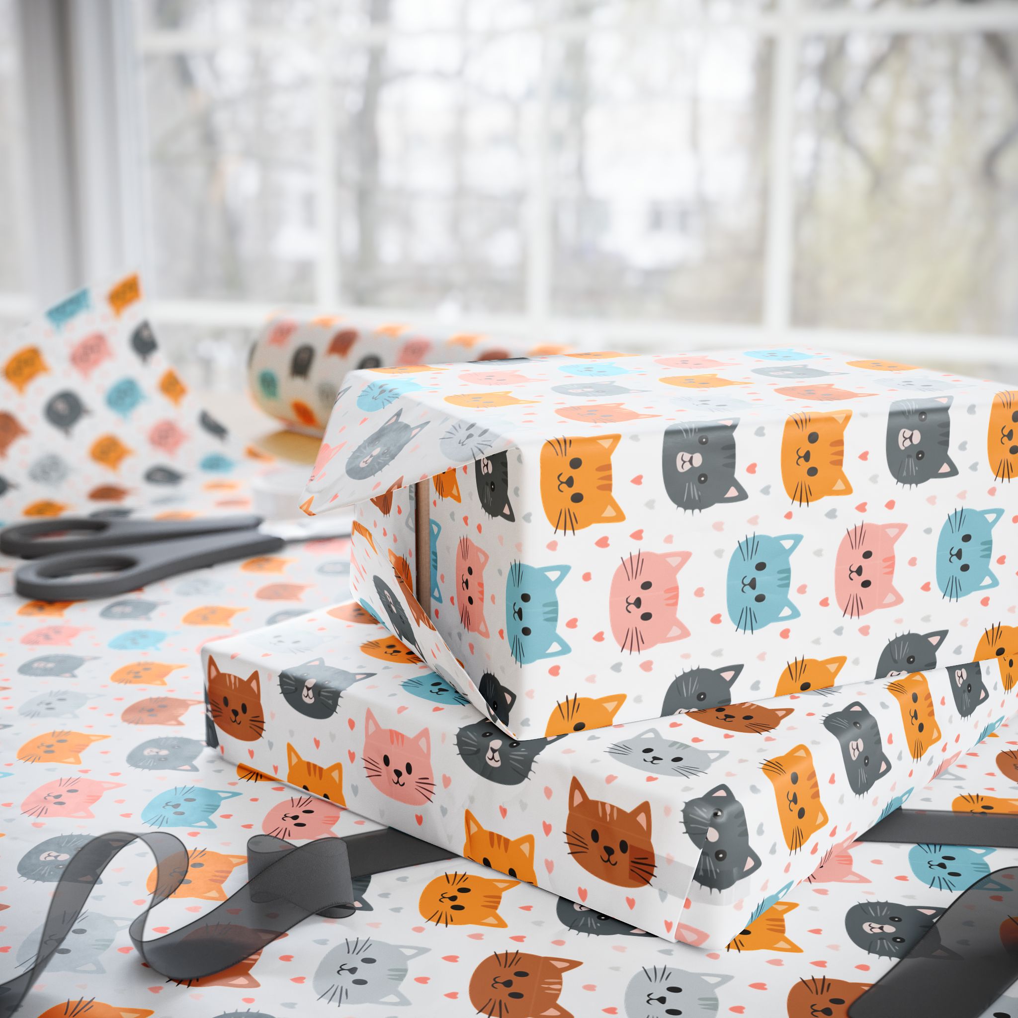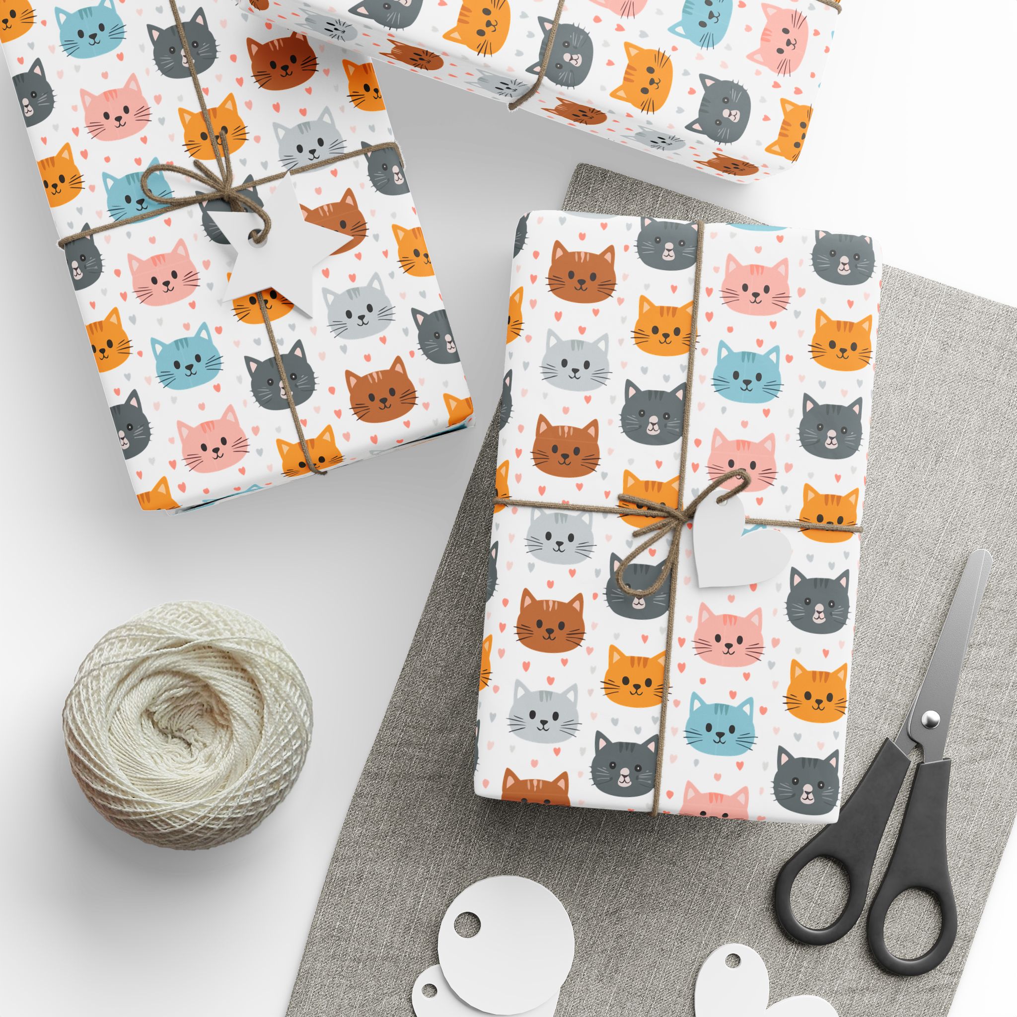 Wrap your gifts in charm with this kitty faces wrapping paper on a white background. Perfect for cat lovers, it adds a playful touch to any present. Great for birthdays, holidays, or just spreading joy with adorable packaging!
