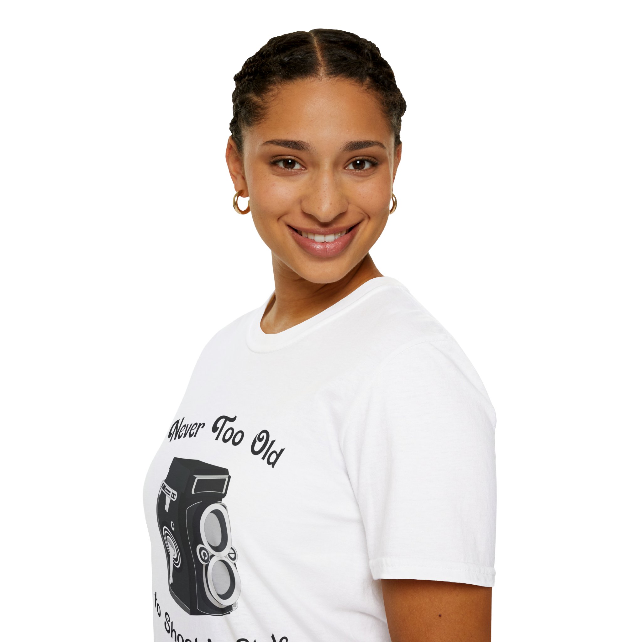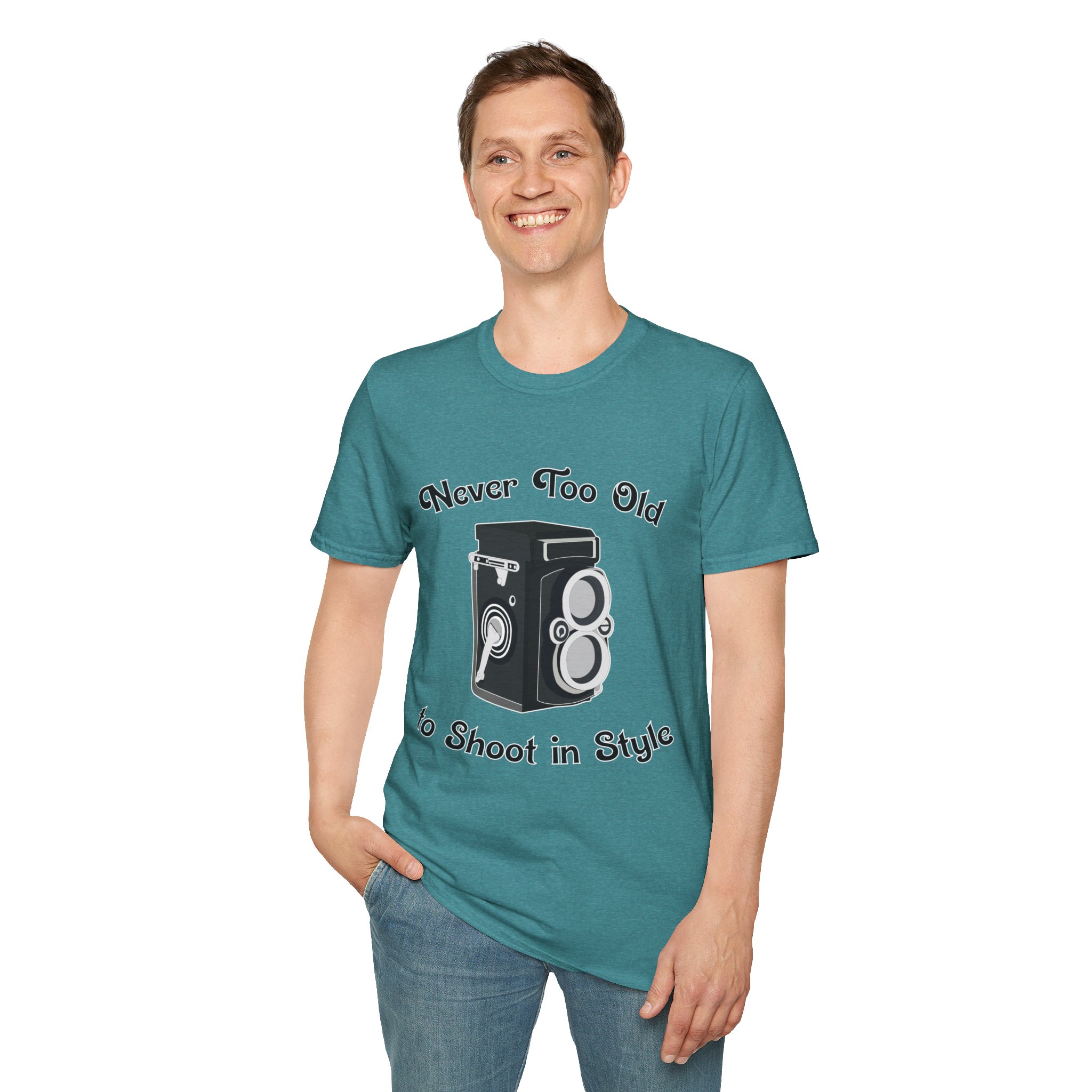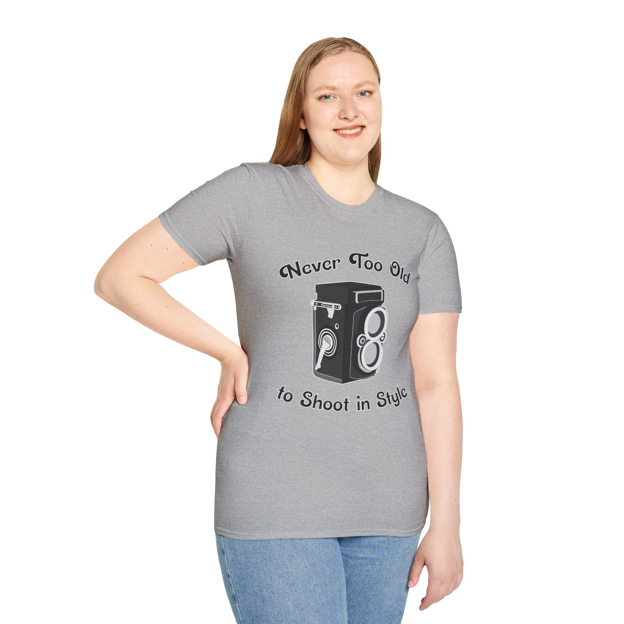 Never Too Old to Shoot in Style Unisex Softstyle T-Shirt
