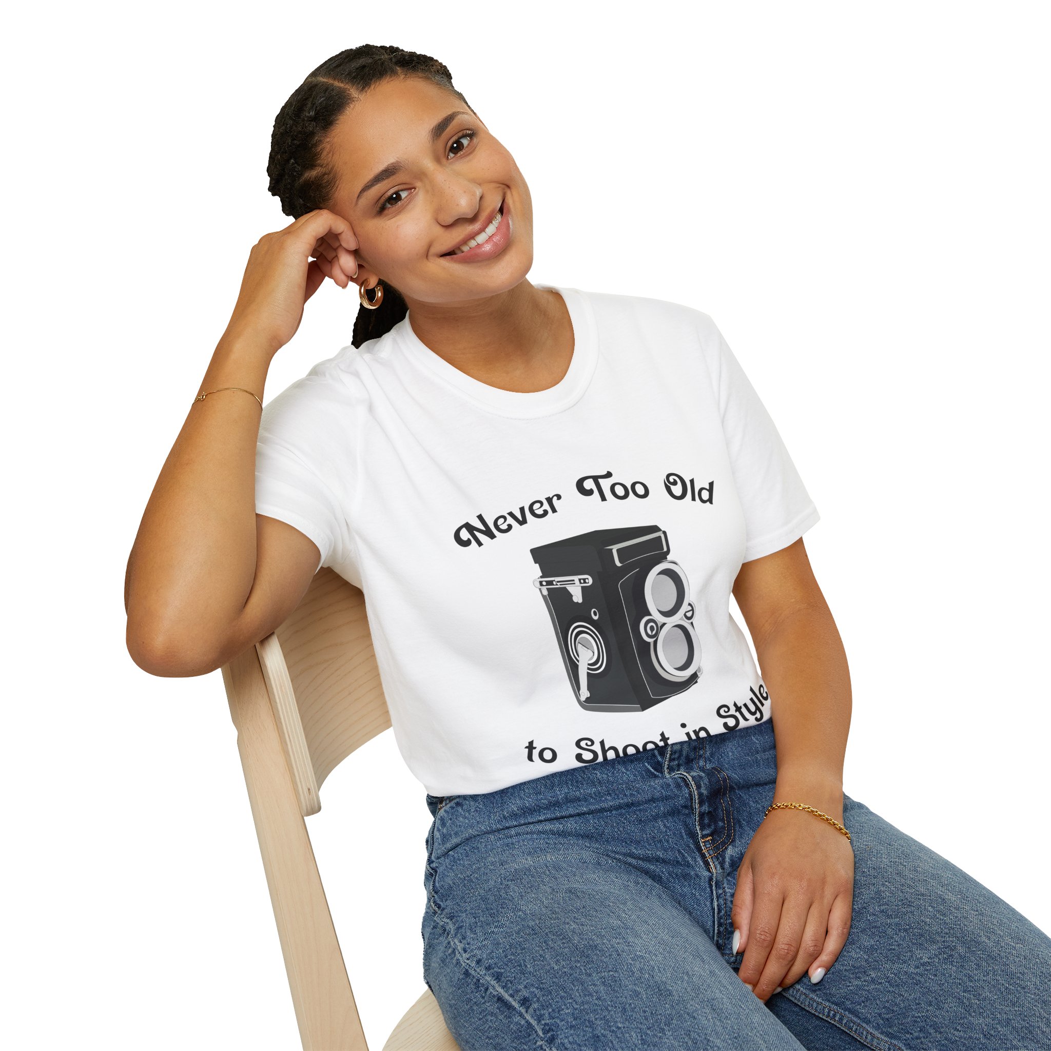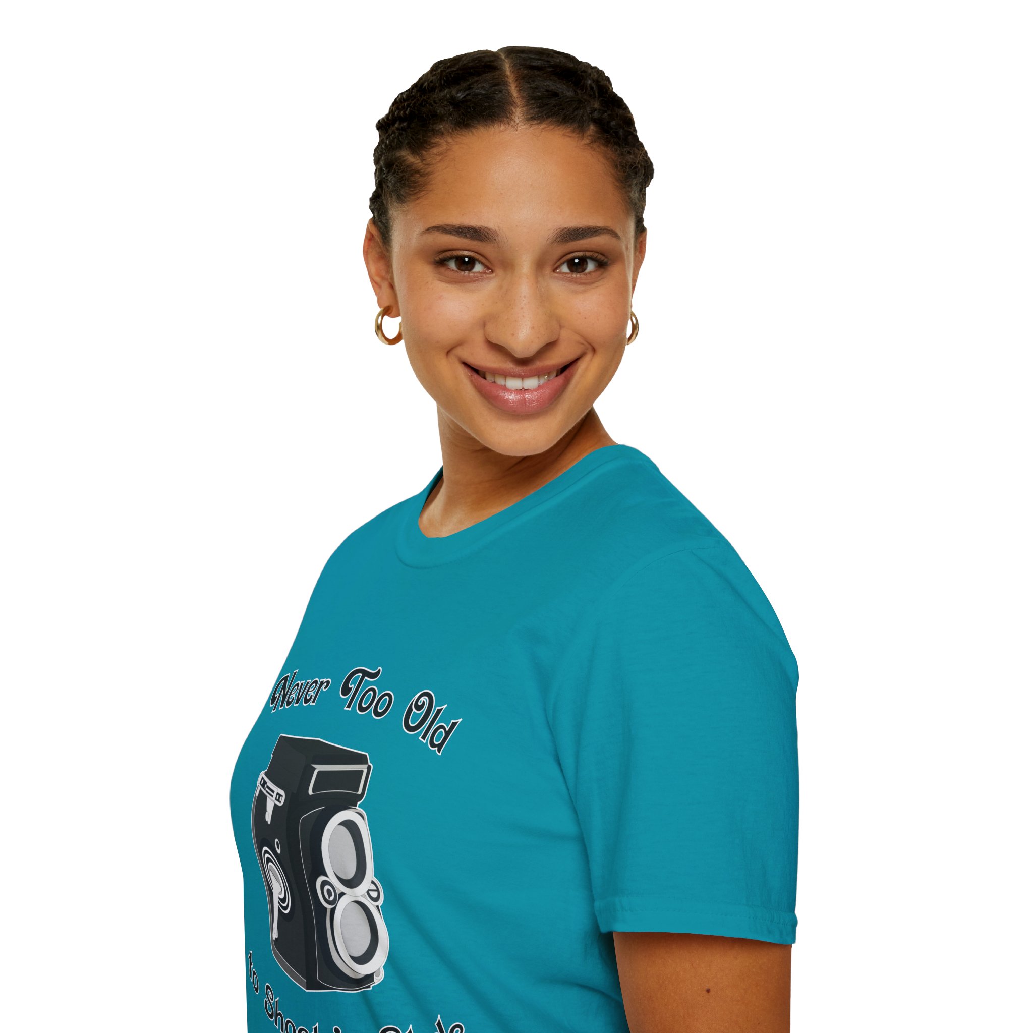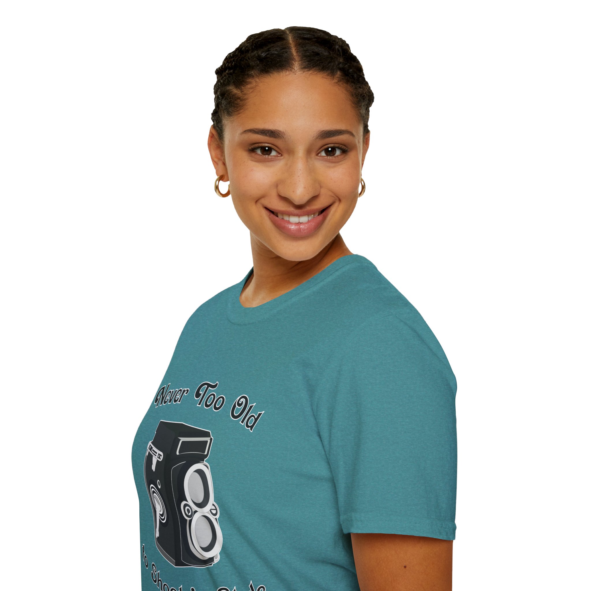 Never Too Old to Shoot in Style Unisex Softstyle T-Shirt