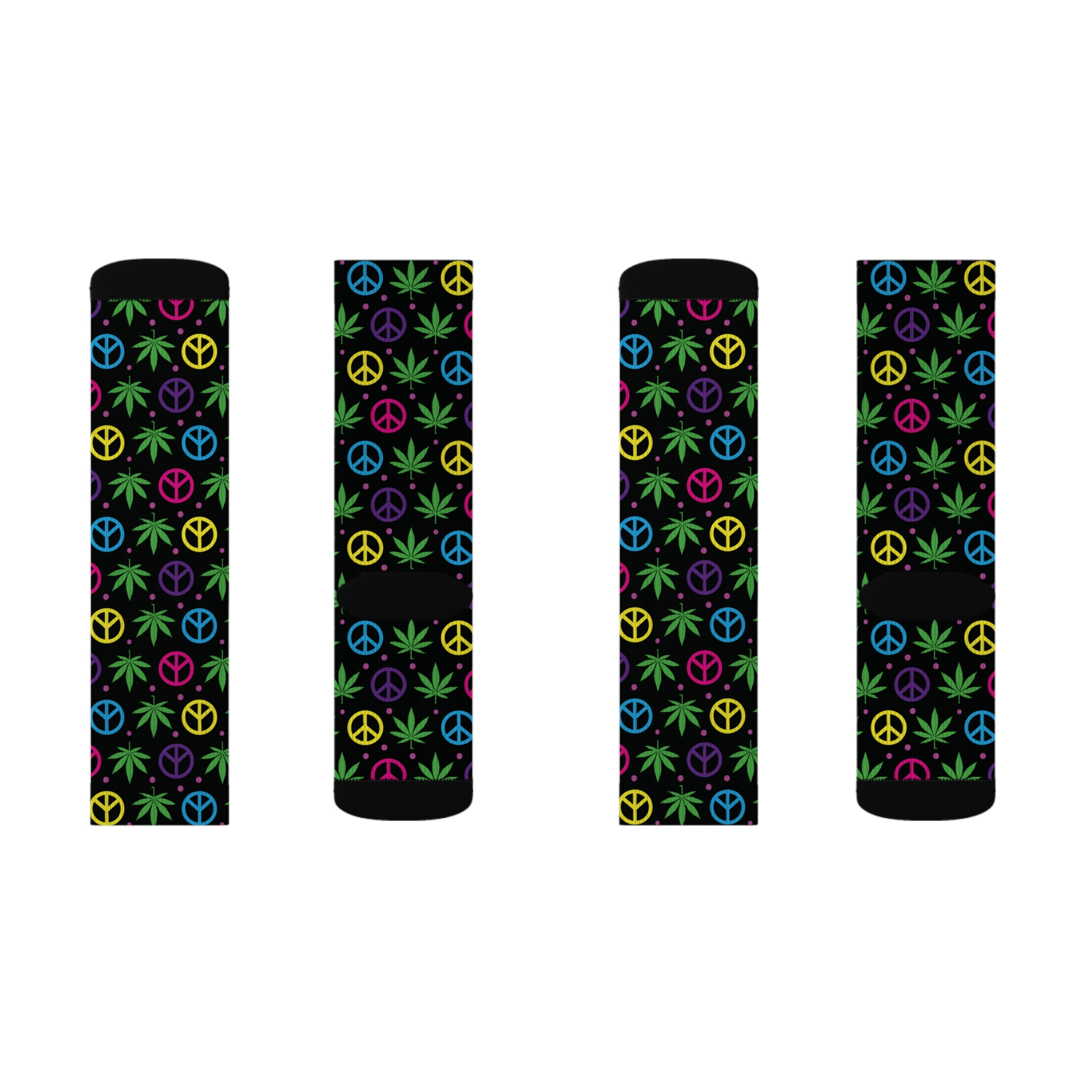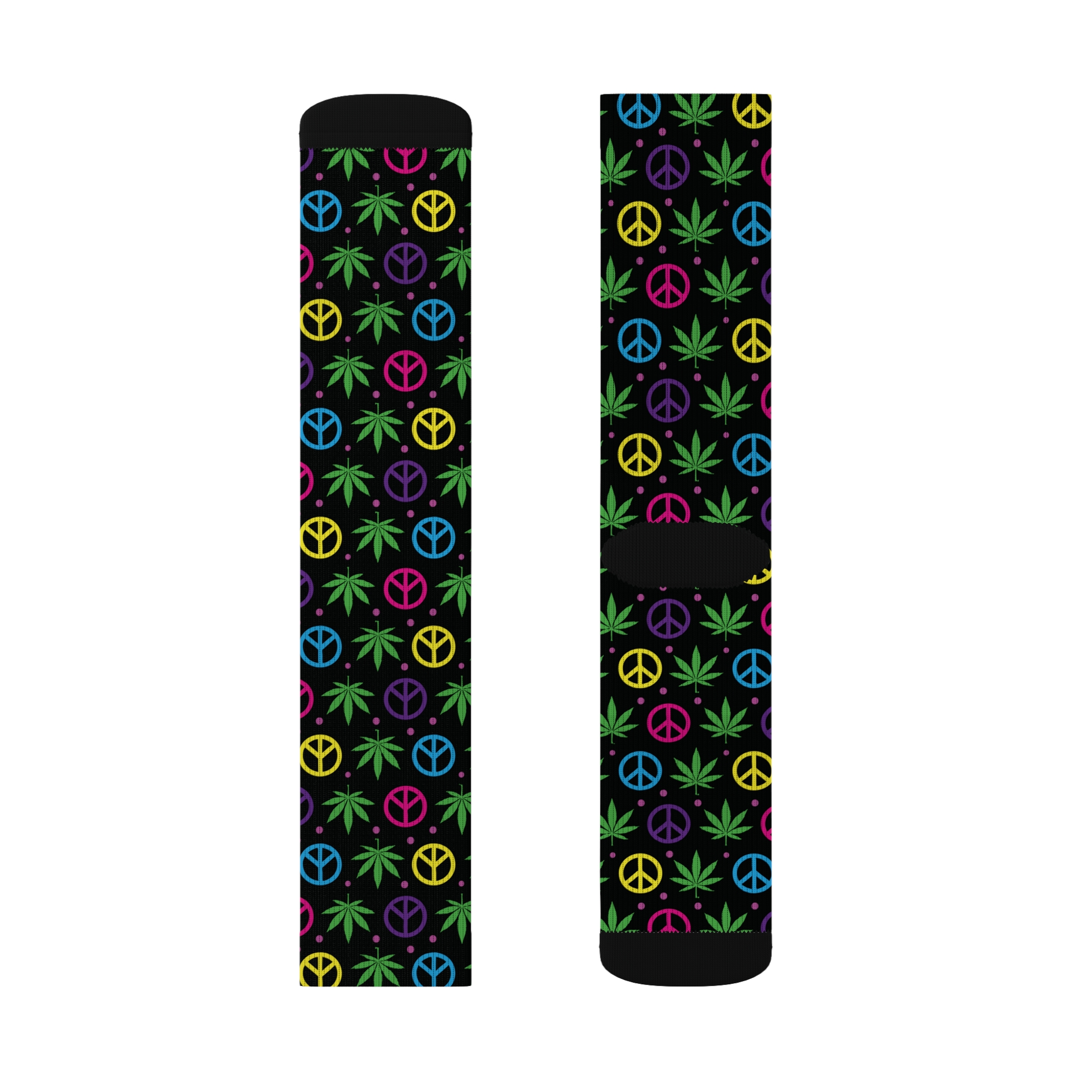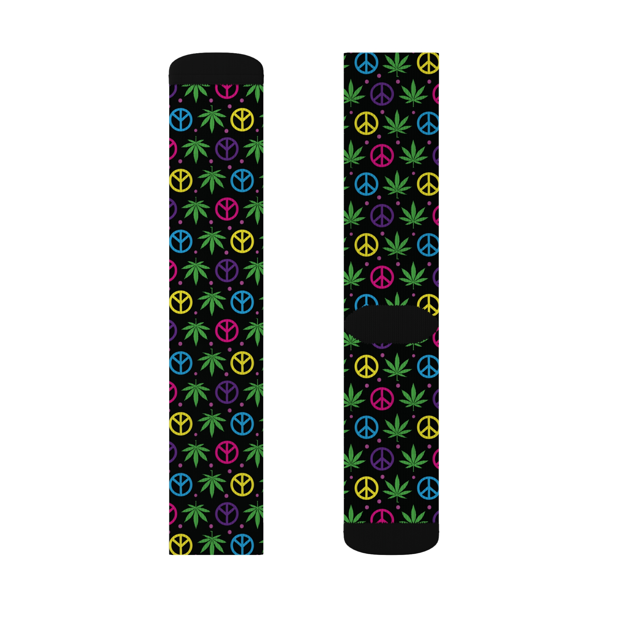 Embrace laid-back vibes with these bold socks featuring peace signs and pot leaves on a sleek black background. Perfect for those who love making a statement, they combine fun, edgy style with soft, breathable fabric for all-day comfort. Let your …