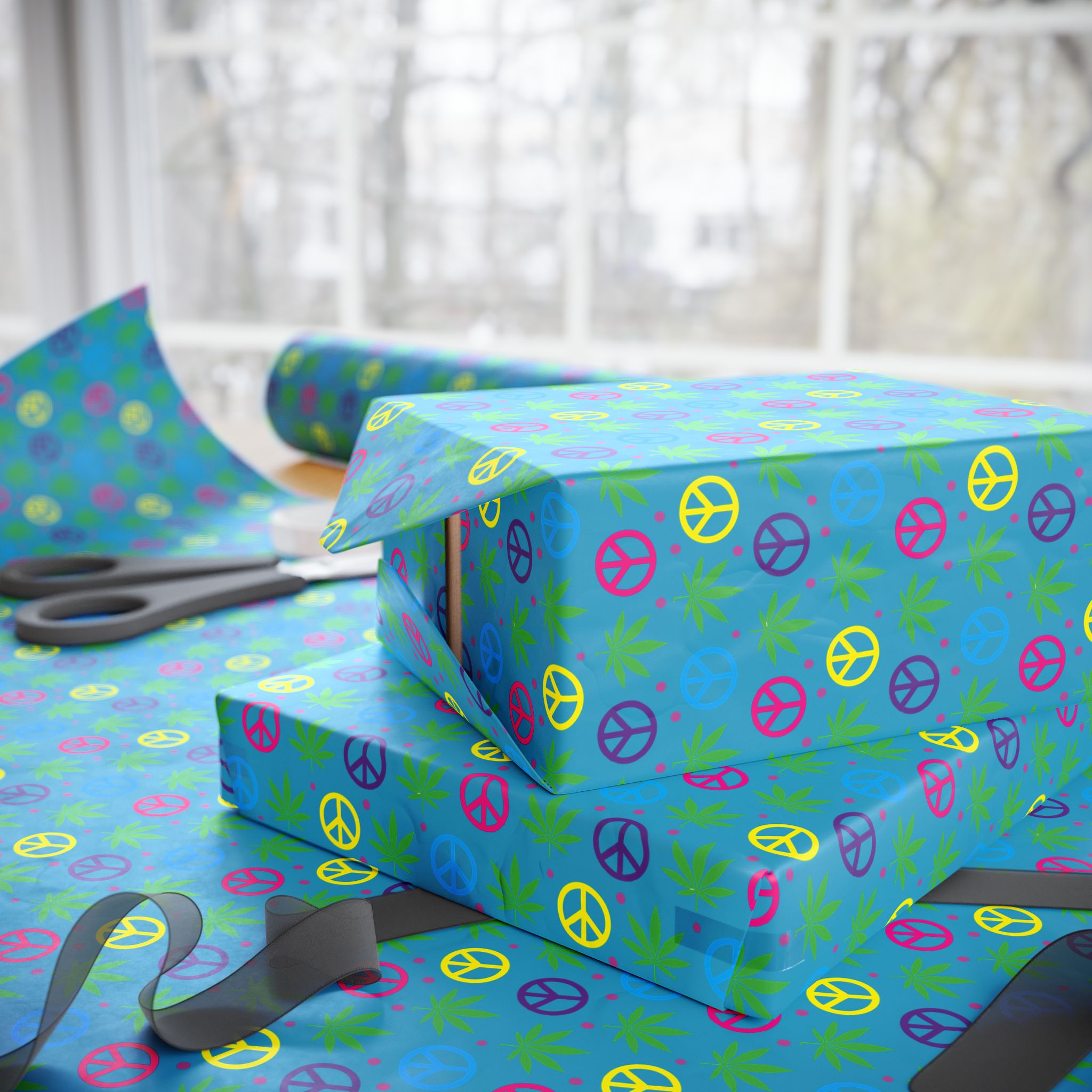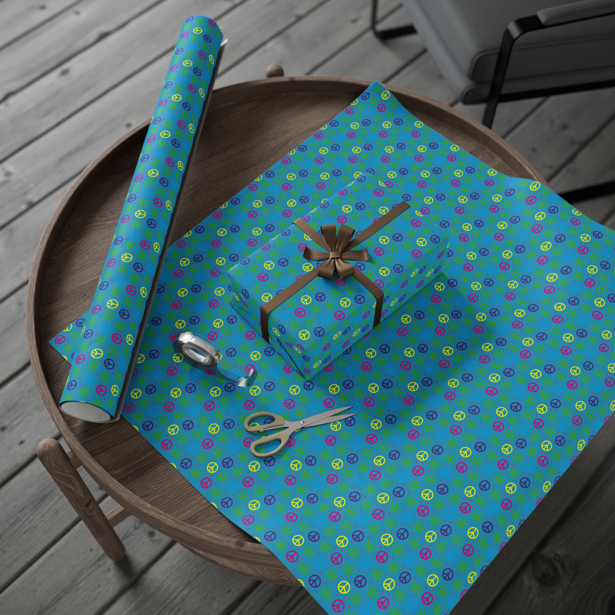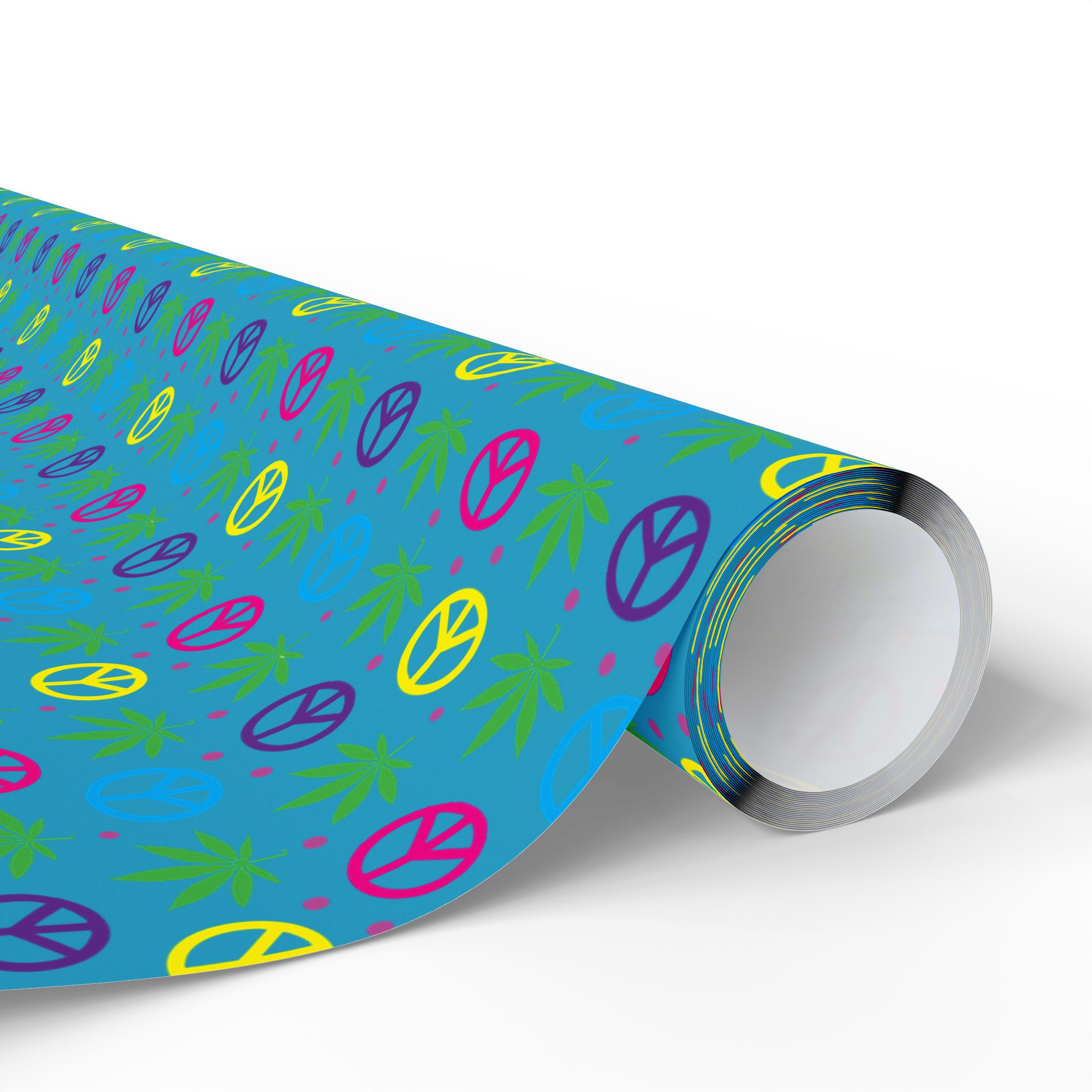 Wrap your gifts in good vibes! Our turquoise wrapping paper features a playful pattern of pot leaves and peace signs, perfect for adding a fun, laid-back touch to any celebration. Spread peace and love with every present!