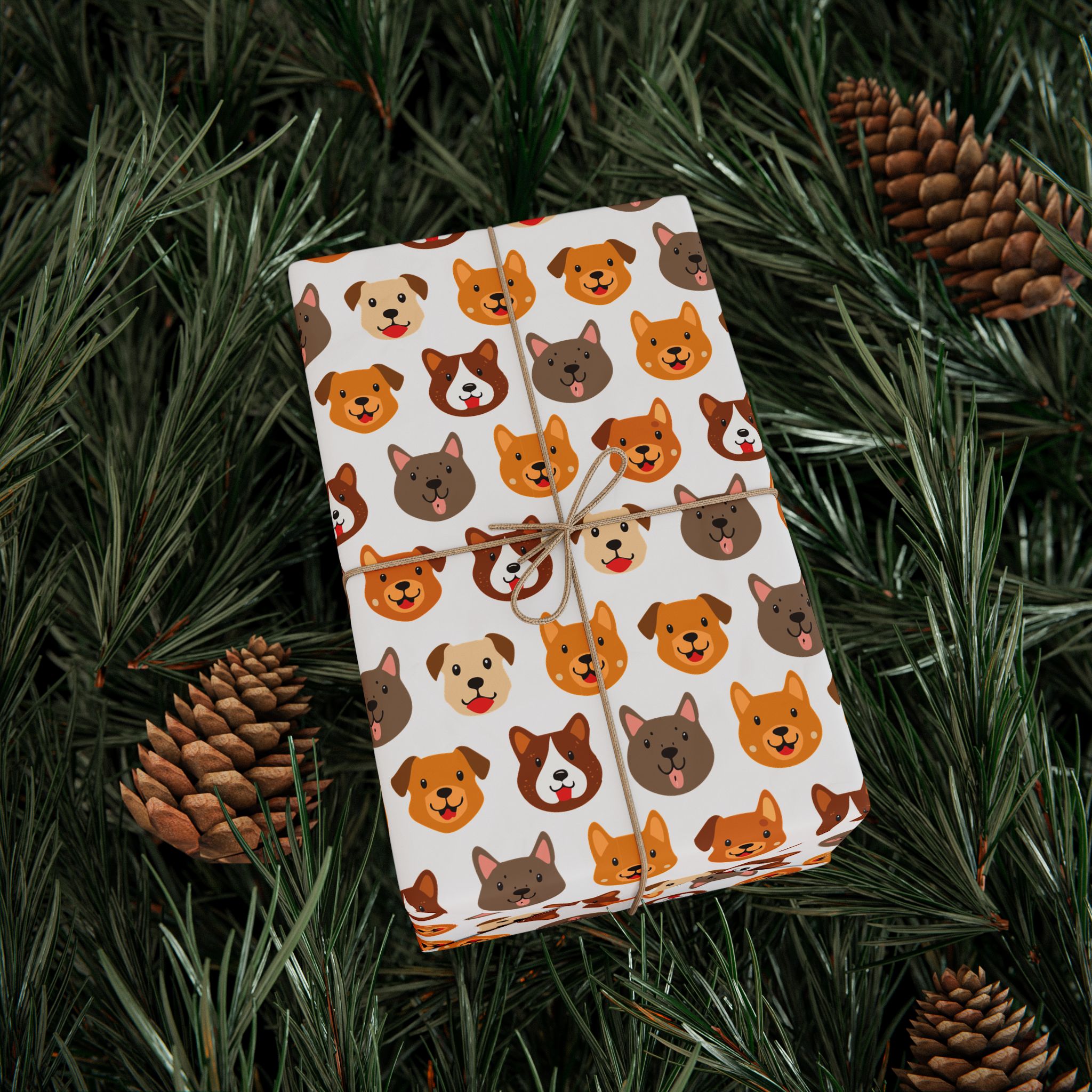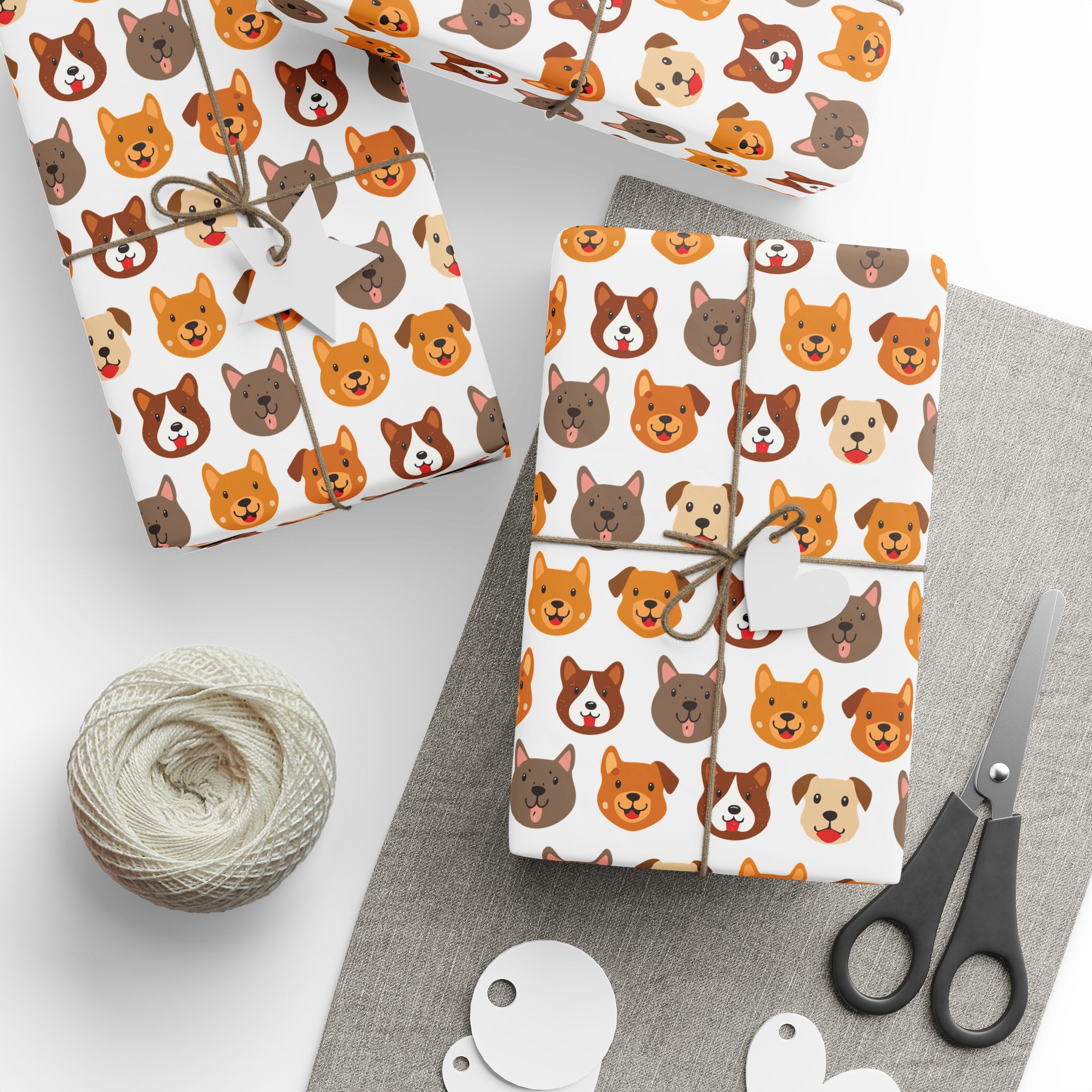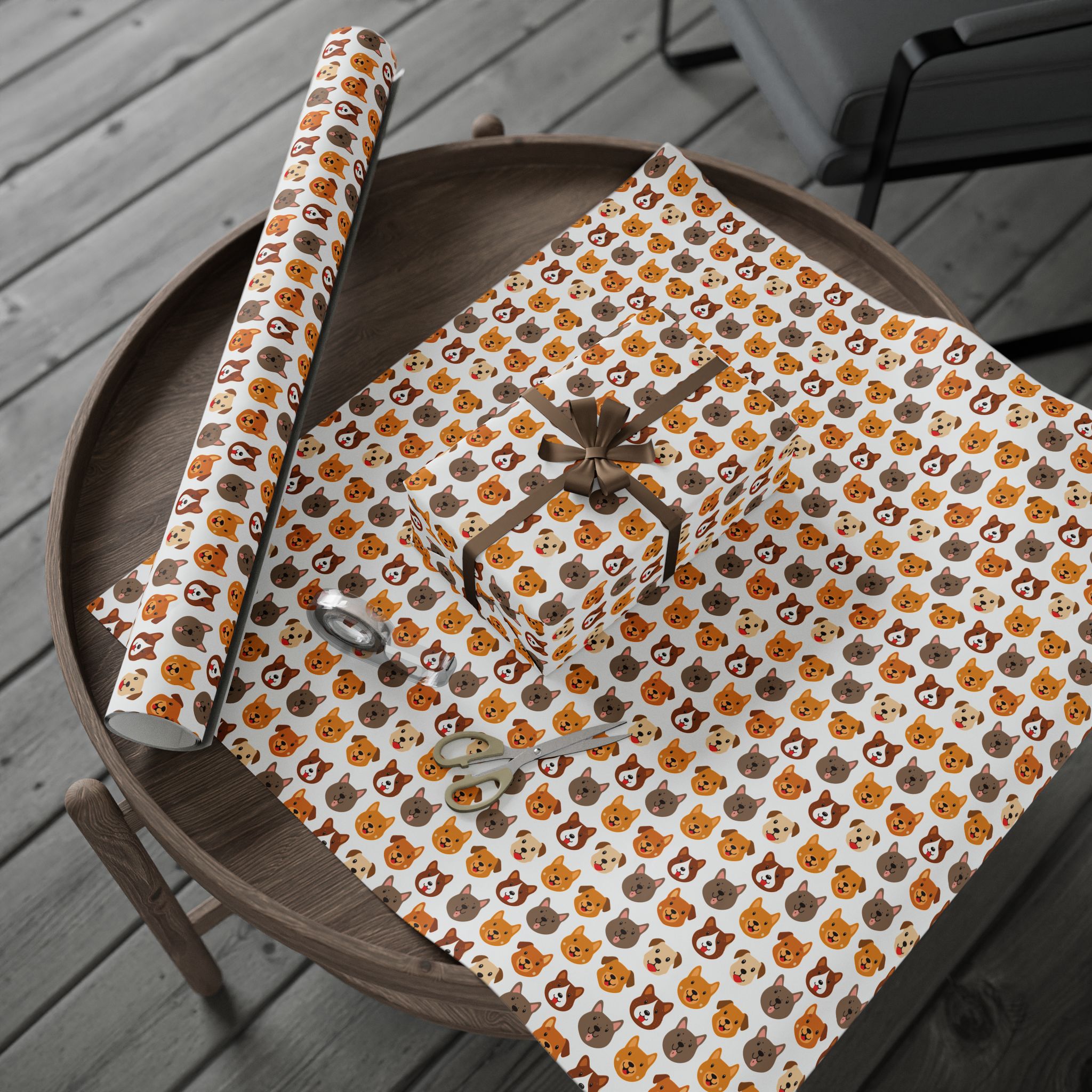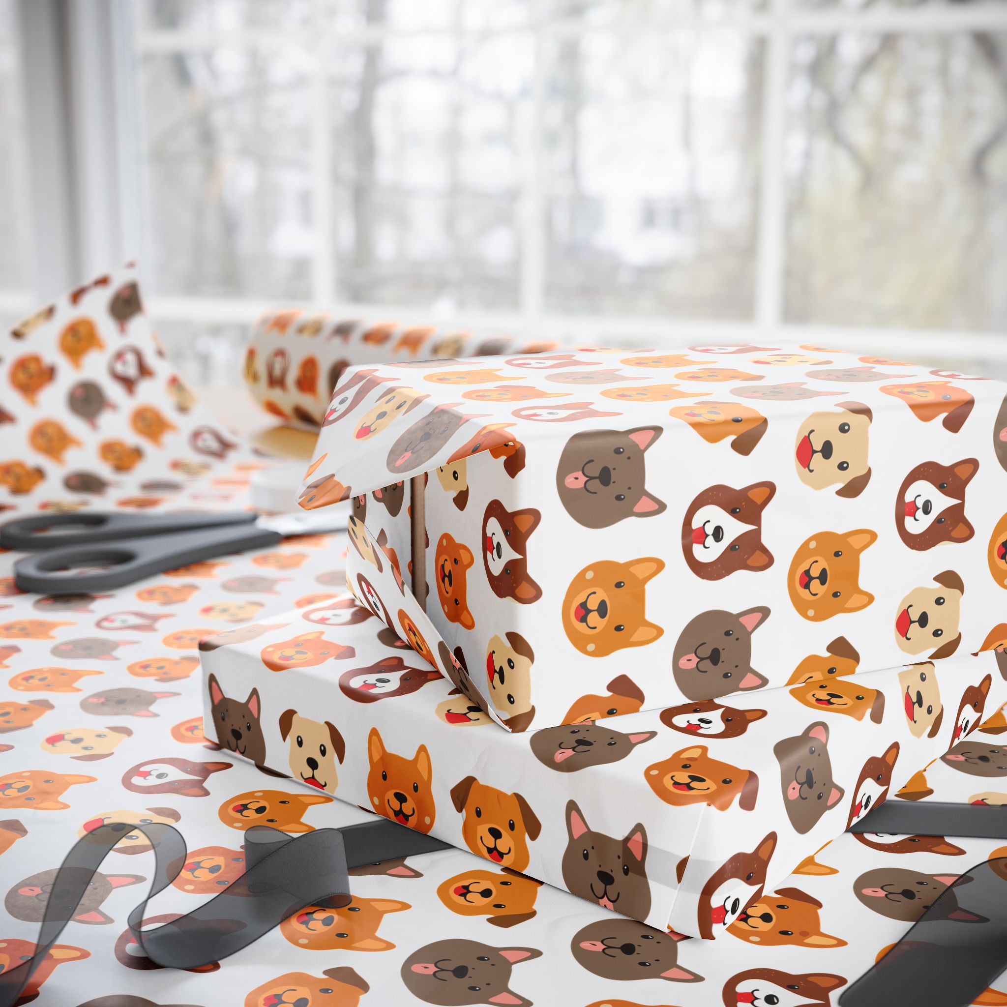 Wrap your gifts in cuteness with this puppy face wrapping paper on a white background. Perfect for dog lovers, it adds a playful touch to any present. Great for birthdays, holidays, or just spreading joy with adorable packaging!