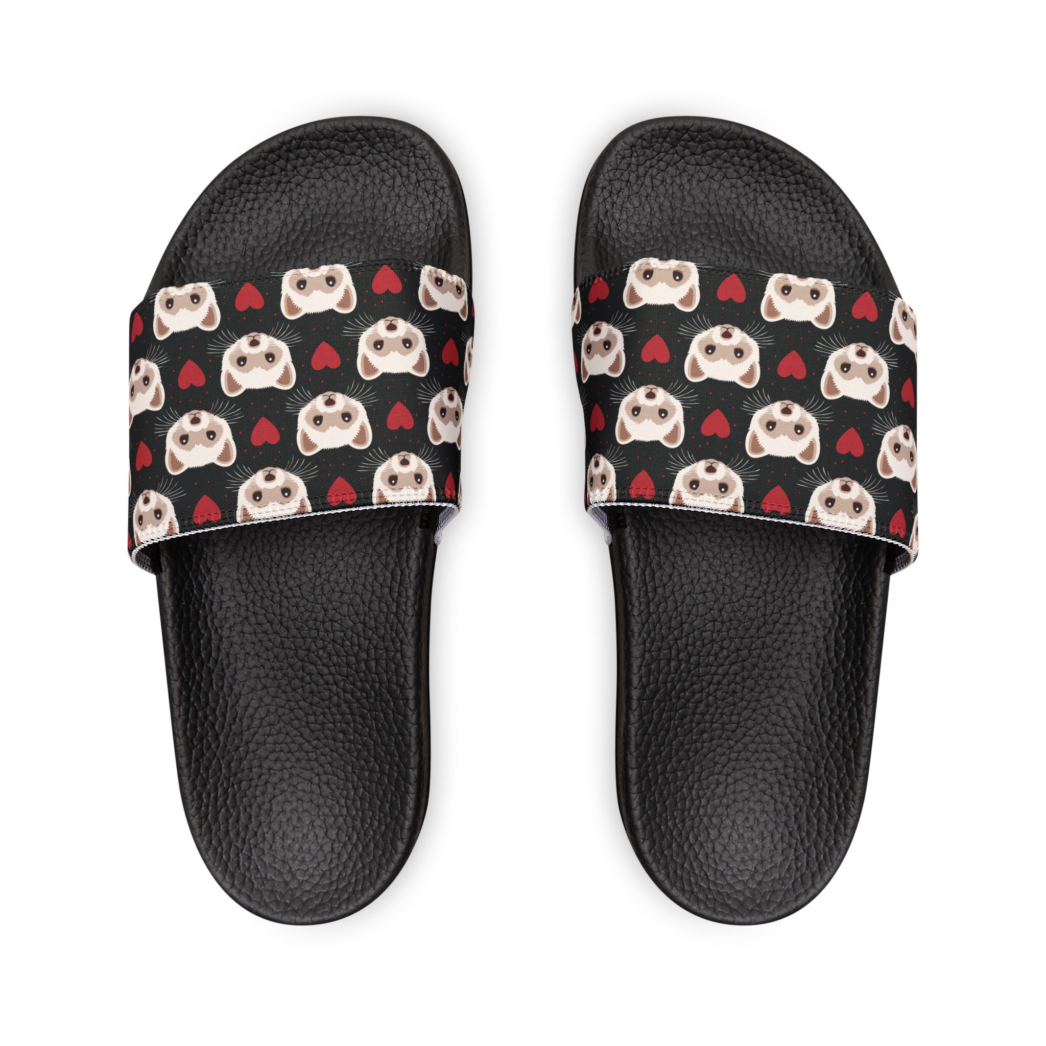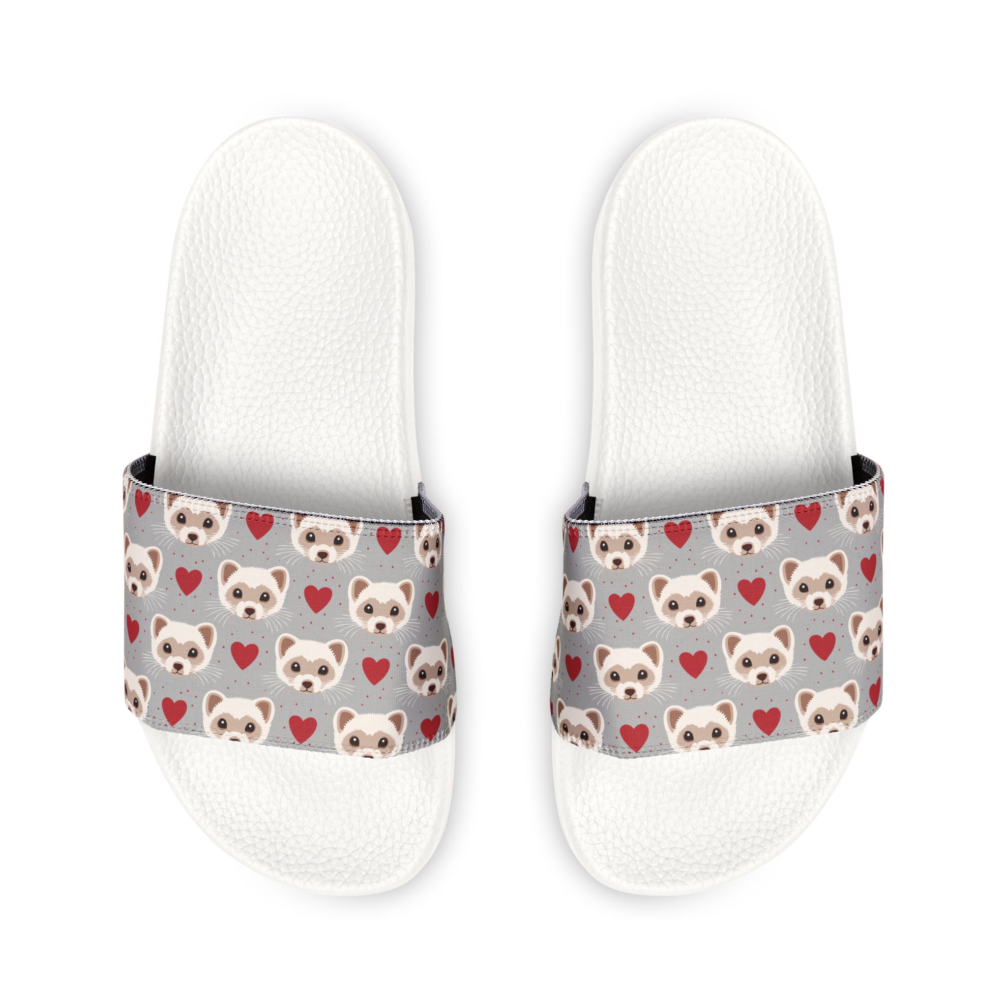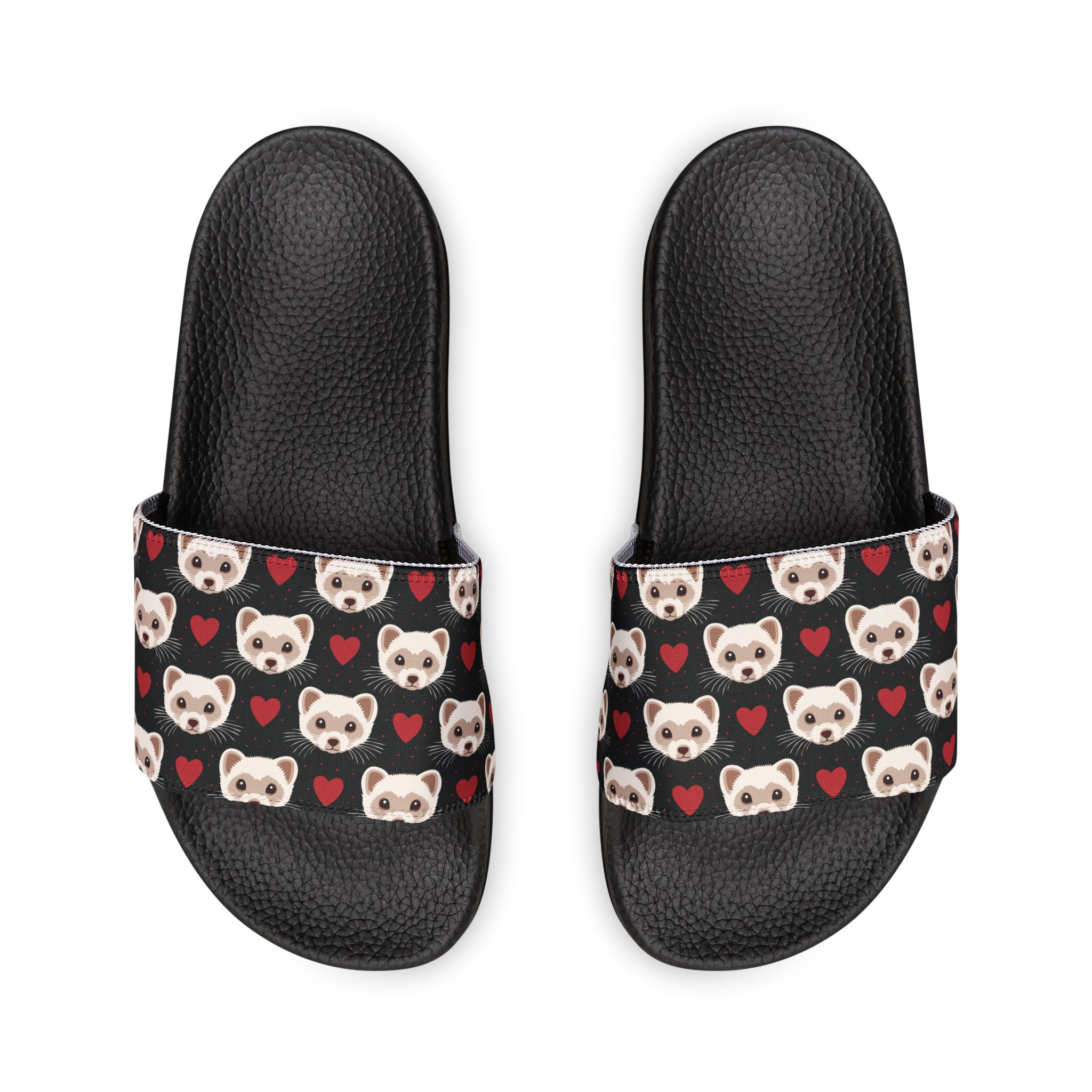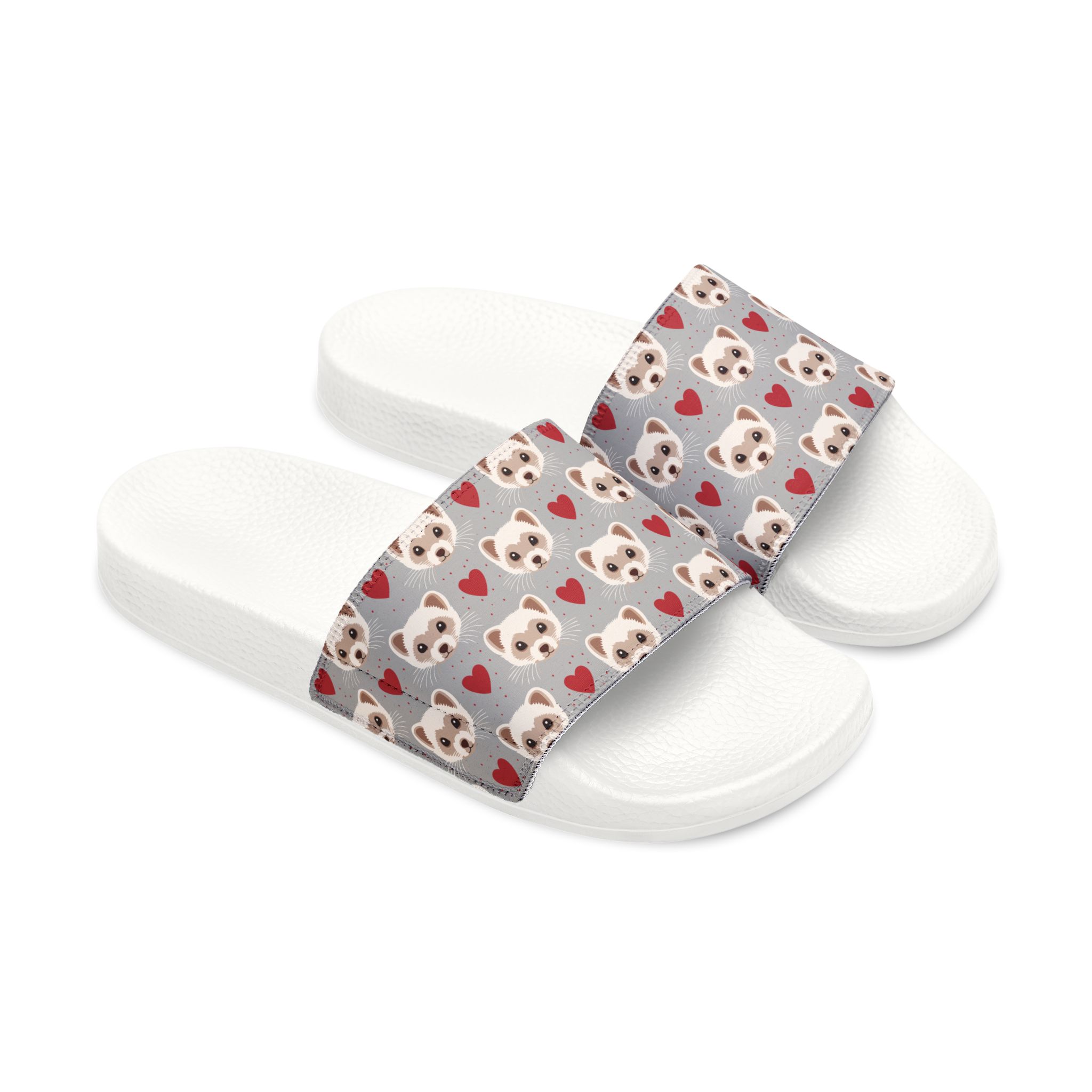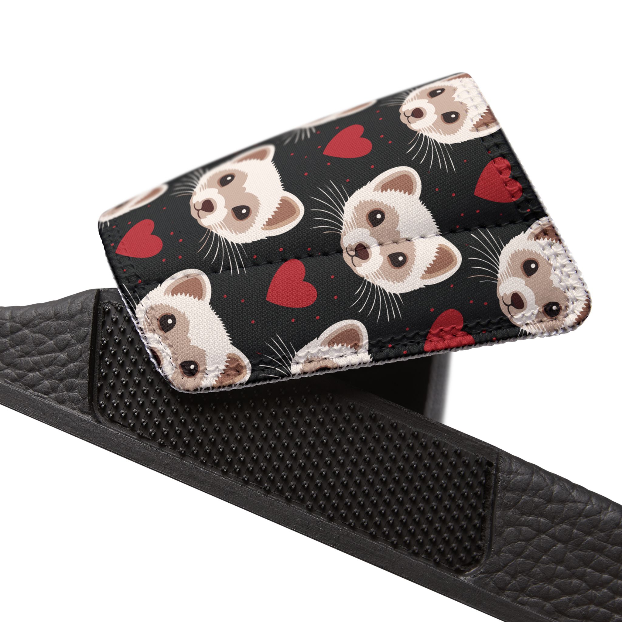 Stay cool with these women's slide sandals featuring ferret faces! Durable PU outsoles and neoprene straps prevent chafing, while the ergonomic sole offers comfort for all your summer adventures!