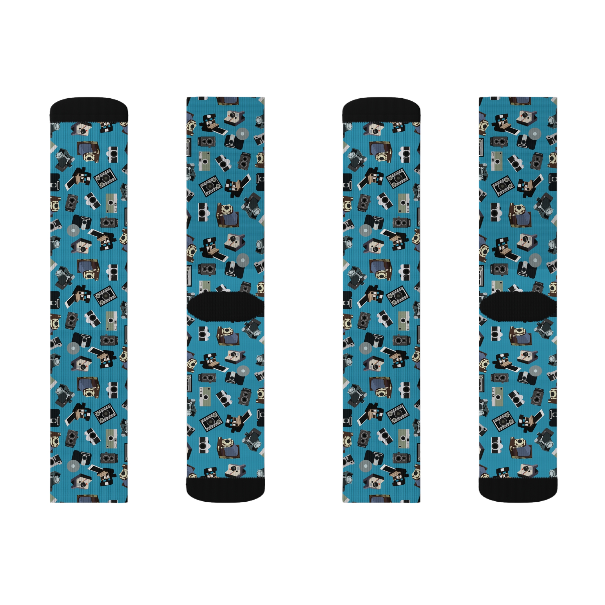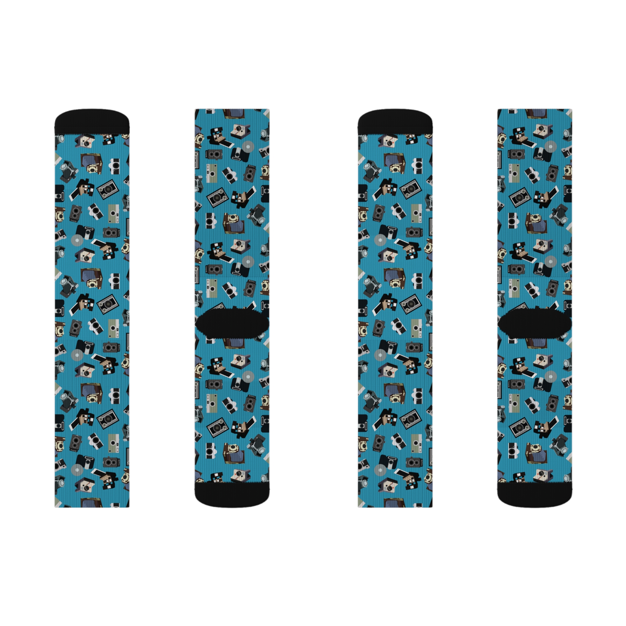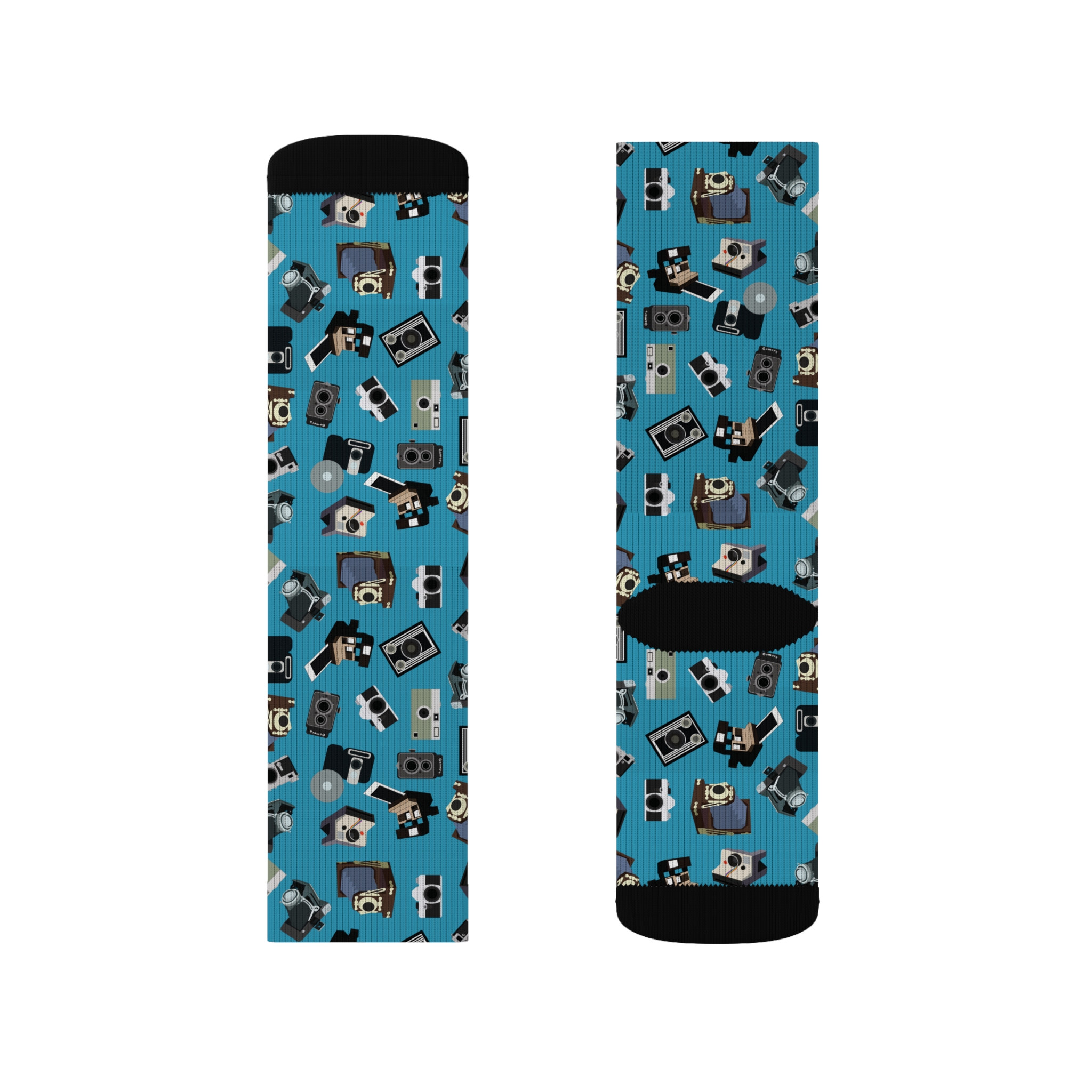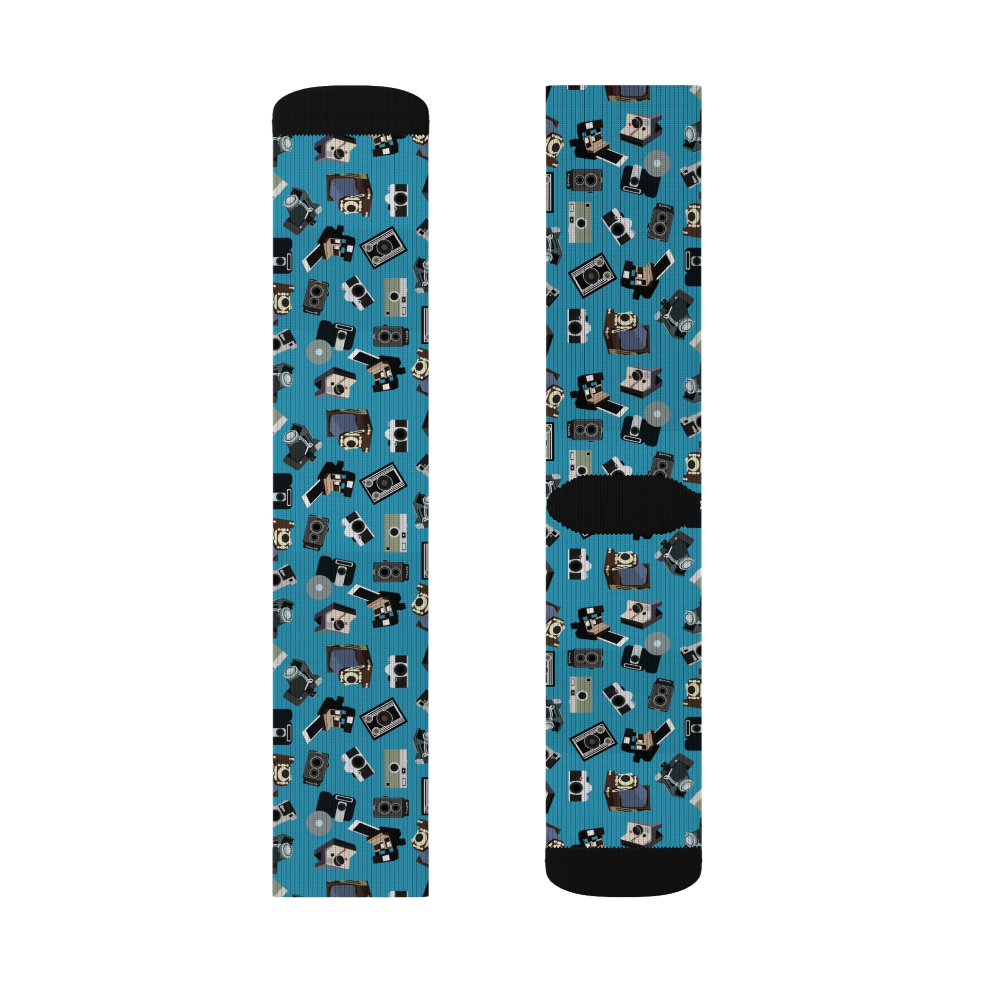 Vintage Camera Pattern Socks - Turquoise